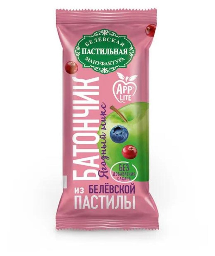 Батончик ™ "Белевская пастильная мануфактура" из яблочной пастилы "Ягодное ассорти" без сахара 35 гр
