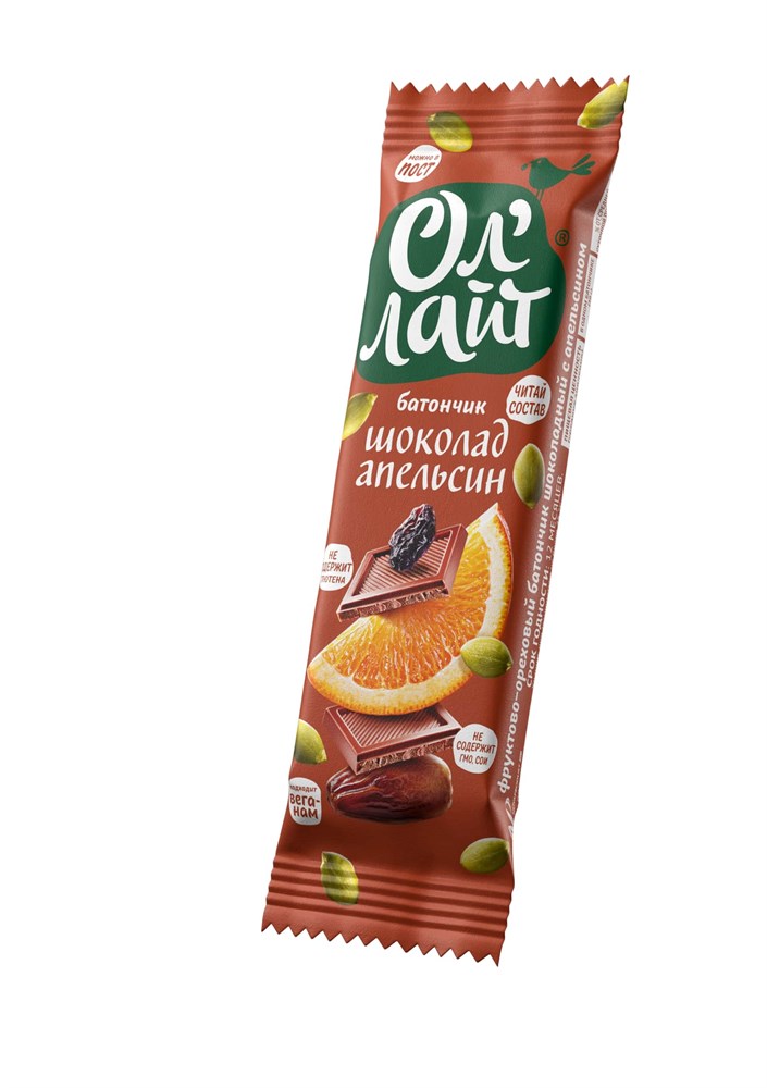 Батончик ™ "Ол Лайт" фруктово-ореховый Шоколадный с апельсином, 30 гр.