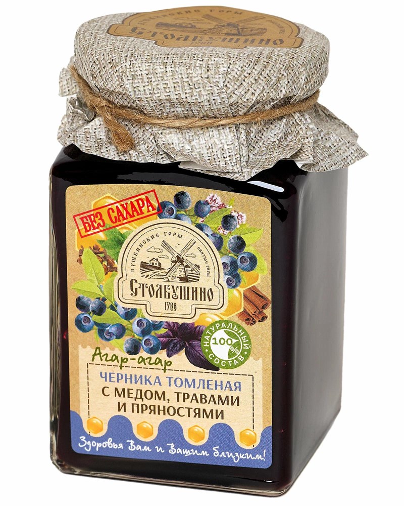 Томленая ягода ™ Столбушино ЧЕРНИКА с медом, травами и пряностями БЕЗ САХАРА 250 гр.