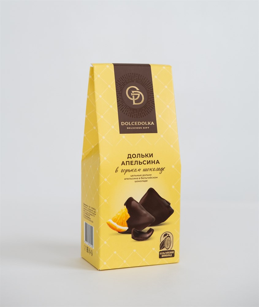 Всем известно, что любимый десерт дарят от всего сердца с особым вниманием и заботой. Поэтому специально для Вас мы создали уникальный десерт, уделяя особое внимание полностью натуральному составу и высокому качеству. DOLCEDOLKA - это дольки ароматных апельсинов, покрытые слоем изумительного бельгийского шоколада. Специальная технология производства долек позволяет созранять апельсины нежными и сочными, а вкус поитине восхитительным. DOLCEDOLKA - пусть Ваша жизнь будет по-настоящему сладкой!