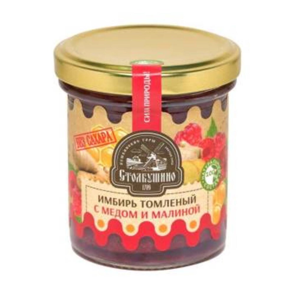 Имбирь томленый ™ Столбушино с медом, МАЛИНОЙ БЕЗ САХАРА 160 гр.