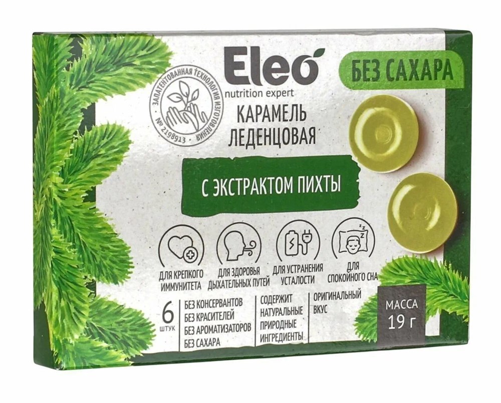 Карамель леденцовая ™ "ELEO" с экстрактом пихты БЕЗ САХАРА 19 гр.
