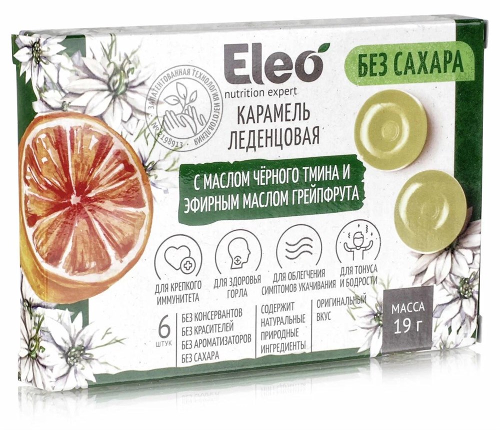Карамель леденцовая ™ "ELEO" с маслом черного тмина и эфирным маслом грейпфрукта БЕЗ САХАРА, 19 гр.
