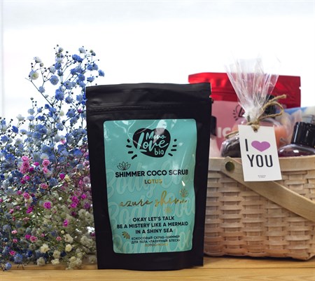 Кокосовый скраб-шиммер для тела ™ MonoLovebio Лазурный блеск Лотос - Нони, 150 гр