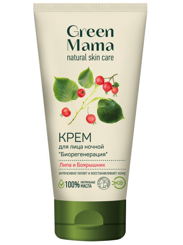 Крем для лица ™ Green mama ночной Биорегенерация Липа и боярышник, 100 мл