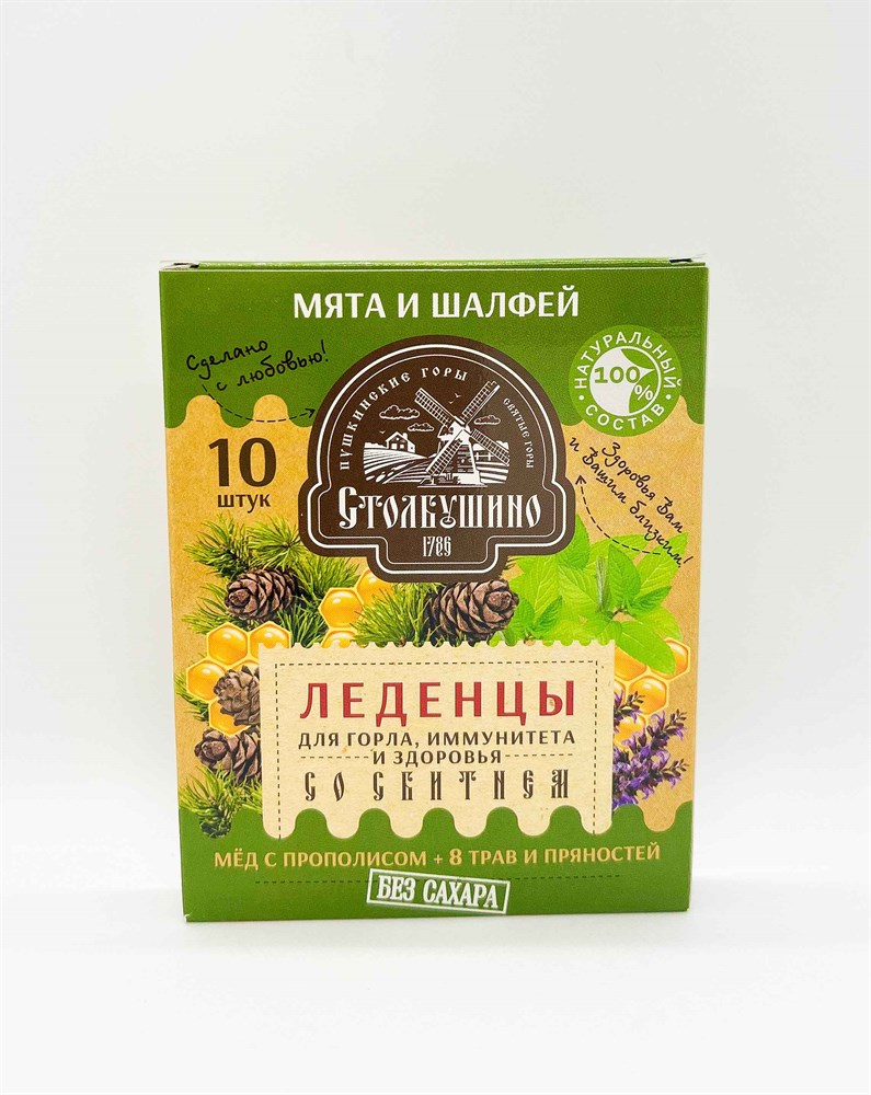 Леденцы ™ "Столбушино" с мятой, шалфеем и кедровым взбитнем БЕЗ САХАРА 32 гр.