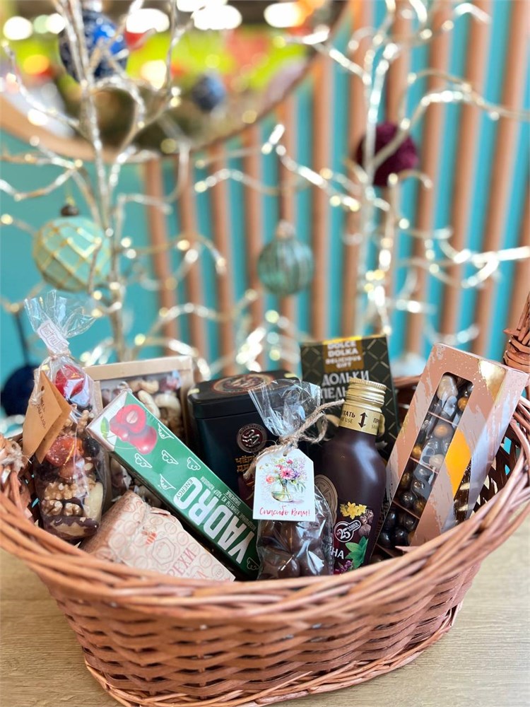 «Волшебная корзинка желаний» — особенный новогодний подарок, созданный для того, чтобы принести радость, тепло и ощущение волшебства каждому её обладателю. Набор представляет собой изысканный микс полезных и вкусных лакомств, упакованных с любовью и вниманием к деталям.