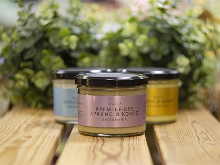 Сладкая паста со вкусом арахиса и крем-брюле, приготовленная по уникальным технологиям. Используется как добавка к десертам и кашам или самостоятельная сладость. Паста бережно перетирается на каменных жерновах, сохраняет всю пользу кокоса и арахиса.