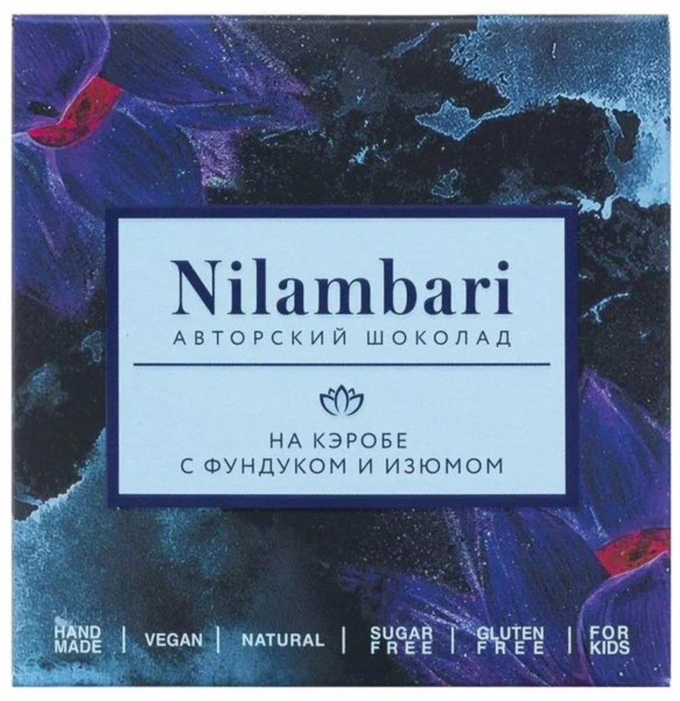 Шоколад ™ "Nilambari" на кэробе с фундуком и изюмом ,65 гр.