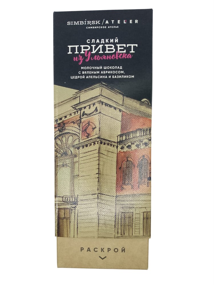Шоколад ™ "SIMBIRSK ateler" " Раскрой" молочный с абрикосом, цедрой апельсина и базиликом, 80 гр