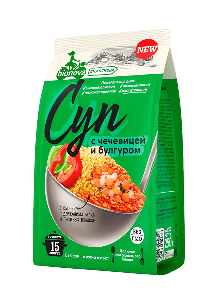 Суп ™ Bionova с чечевицей и булгуром, 250 гр.