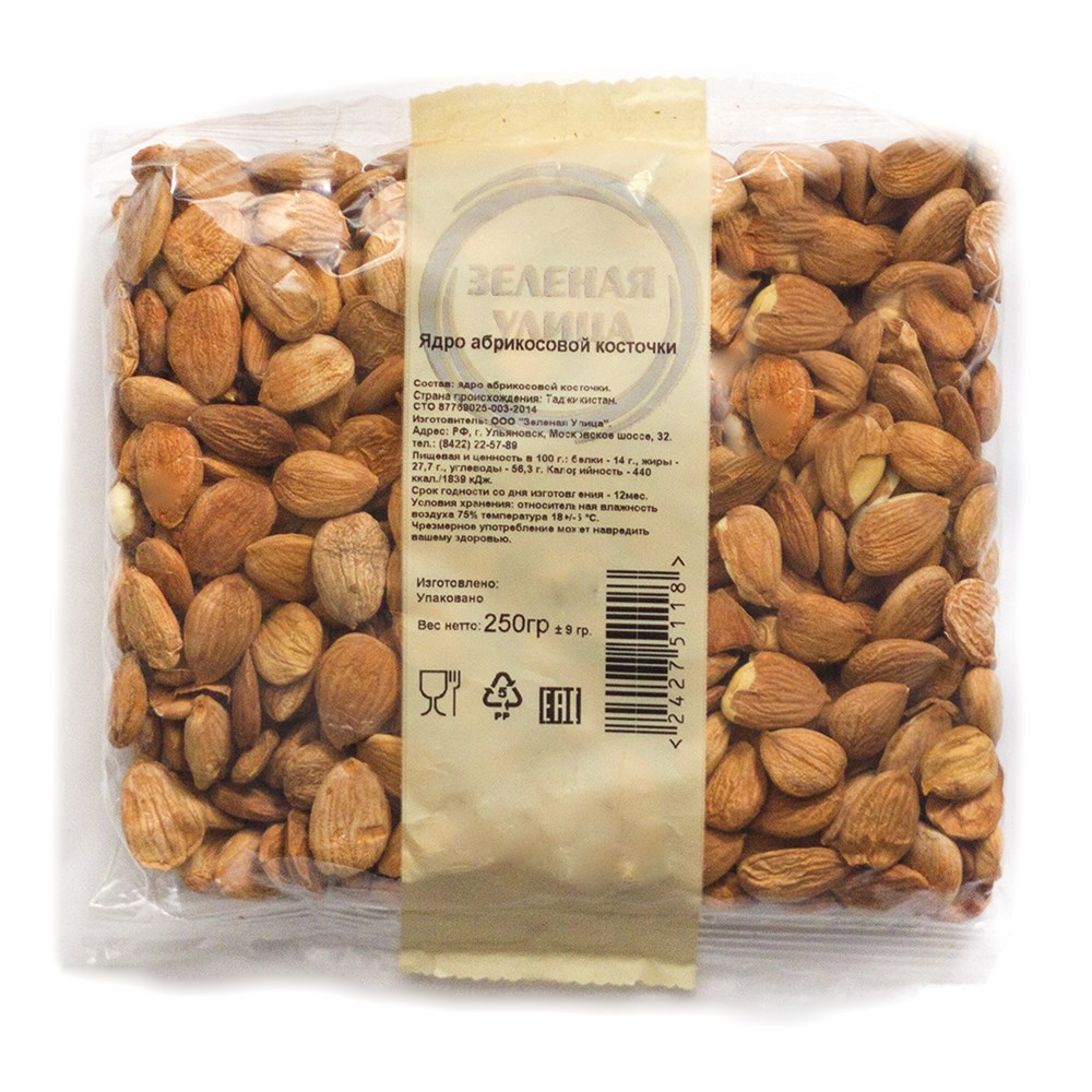Ядро абрикосовой косточки содержит уникальное количество витамина В17, убивающего раковые клетки, антиоксиданты каротиноиды, замедляющие процесс старения организма. Состав: ядро абрикосовой косточки Пищевая ценность (на 100 г) : белки - 14 г, жиры -27,7 г, углеводы - 56,3 г. Энергетическая ценность ( на 100 г): 440 ккал Срок годности: 12 месяцев Условия хранения: относительная влажность воздуха 75% температура 18+/-5с