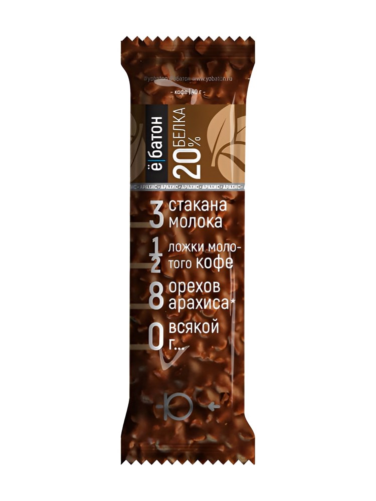 Батончики ™ "Ё батон"20 % протеина со вкусом КОФЕ с Арахисом в темной шоколадной глазури 40 гр
