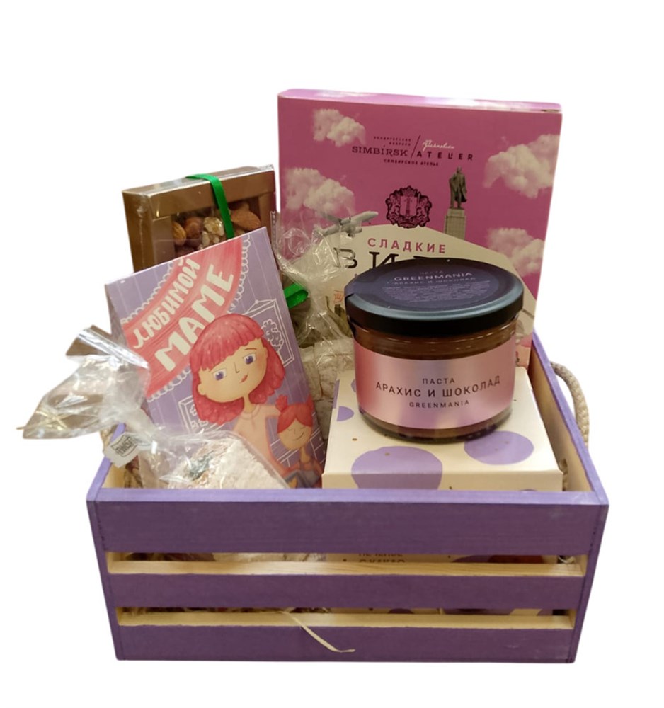Состав: Ящик подарочный КВАДРАТНЫЙ МАЛЕНЬКИЙ с ручками 21см*20см*10 см Зефир ™ "SIMBIRSK atelier" "Виды Ульяновска" черничный в белом шоколаде, 165 гр Чай пирамидка "Chokocat" ЛЮБИМОЙ МАМЕ . 50гр Печенье "meangel" c какао . 100 гр Паста "GreenMania" арахис и шоколад 200 гр. Рахат-лукум "Радуга" 120 гр Рахат-лукум " Лакомка " (ассорти) 110 гр