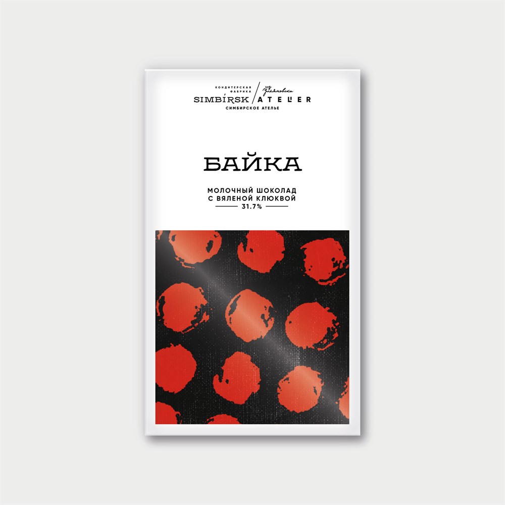Шоколад ™ "SIMBIRSK ateler" "БАЙКА" молочный с вяленой клюквой, 60 гр