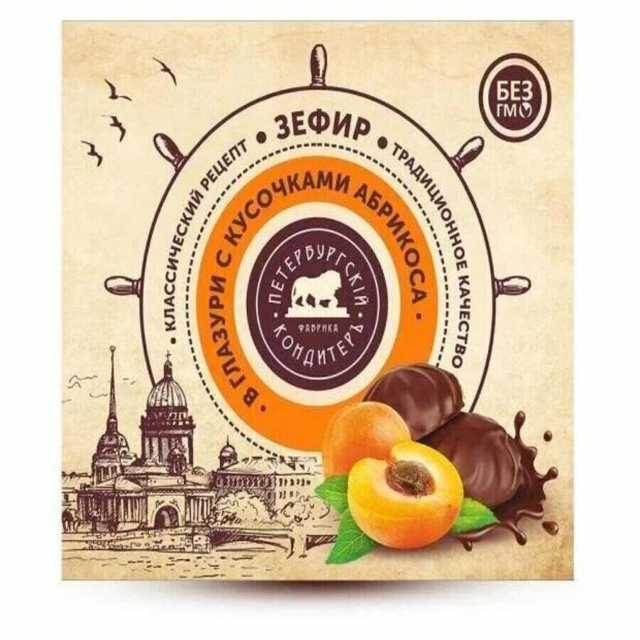 Зефир ™ "Петербургский кондитер" "Солнечный абрикос"в глазури с кусочками абрикоса (коробка), 225 гр